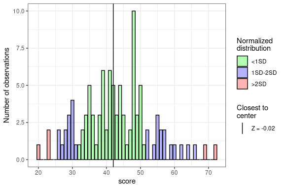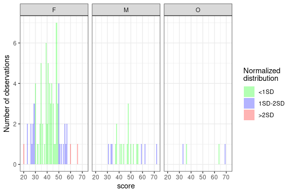 #> $ General Score : int 33 30 45 29 41 29 32 56 29 27 ...Generate norms from raw data to normalize and standardize results