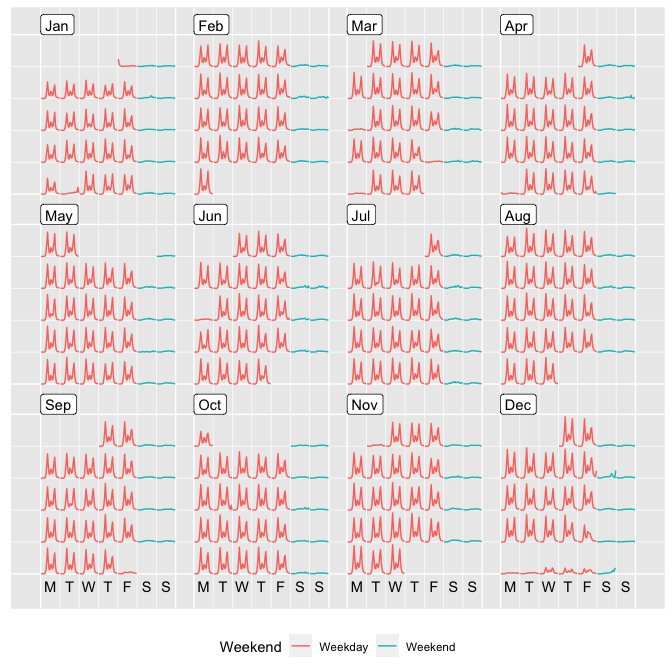 The fully-fledged faceting calendar facet_calendar() unlocks day-to-day stories.