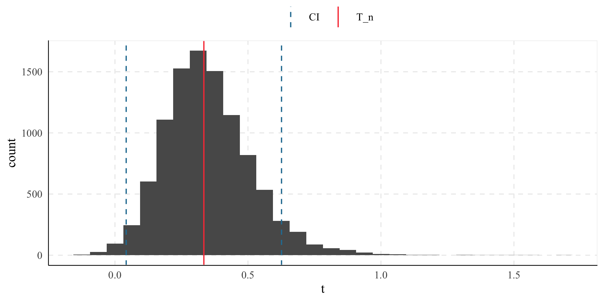 Now, as the sample size \(n\) becomes larger, the expression \(\sqrt{n} (\phi(T_n) - \phi(\theta))\) converges in distribution to \(\phi'(\theta)T\) (Vaart 2000, 25; Bouchard-Côté n.d.).