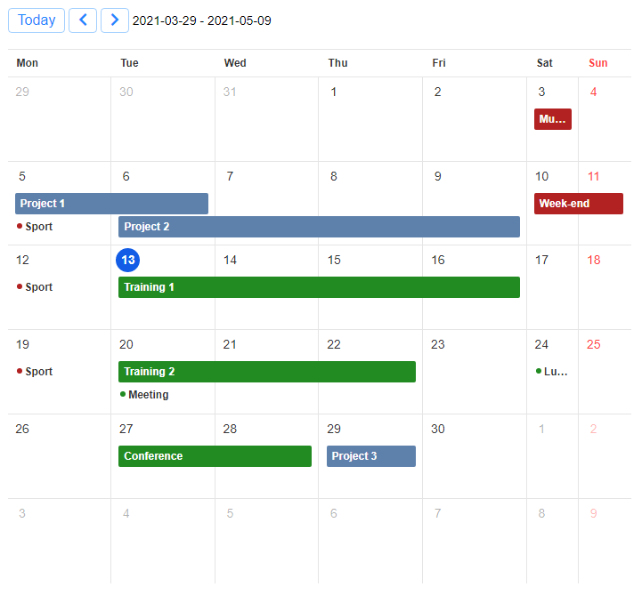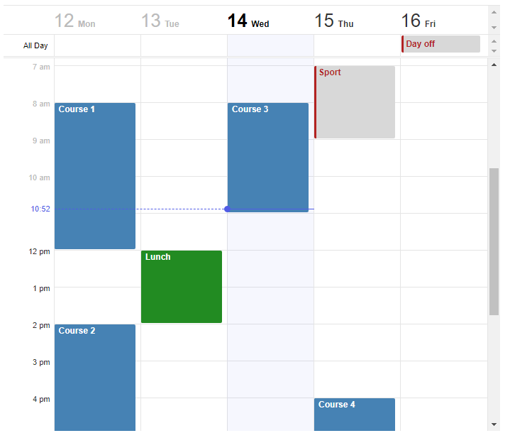 Interactive daily, weekly or monthly calendar. See documentation and examples:
