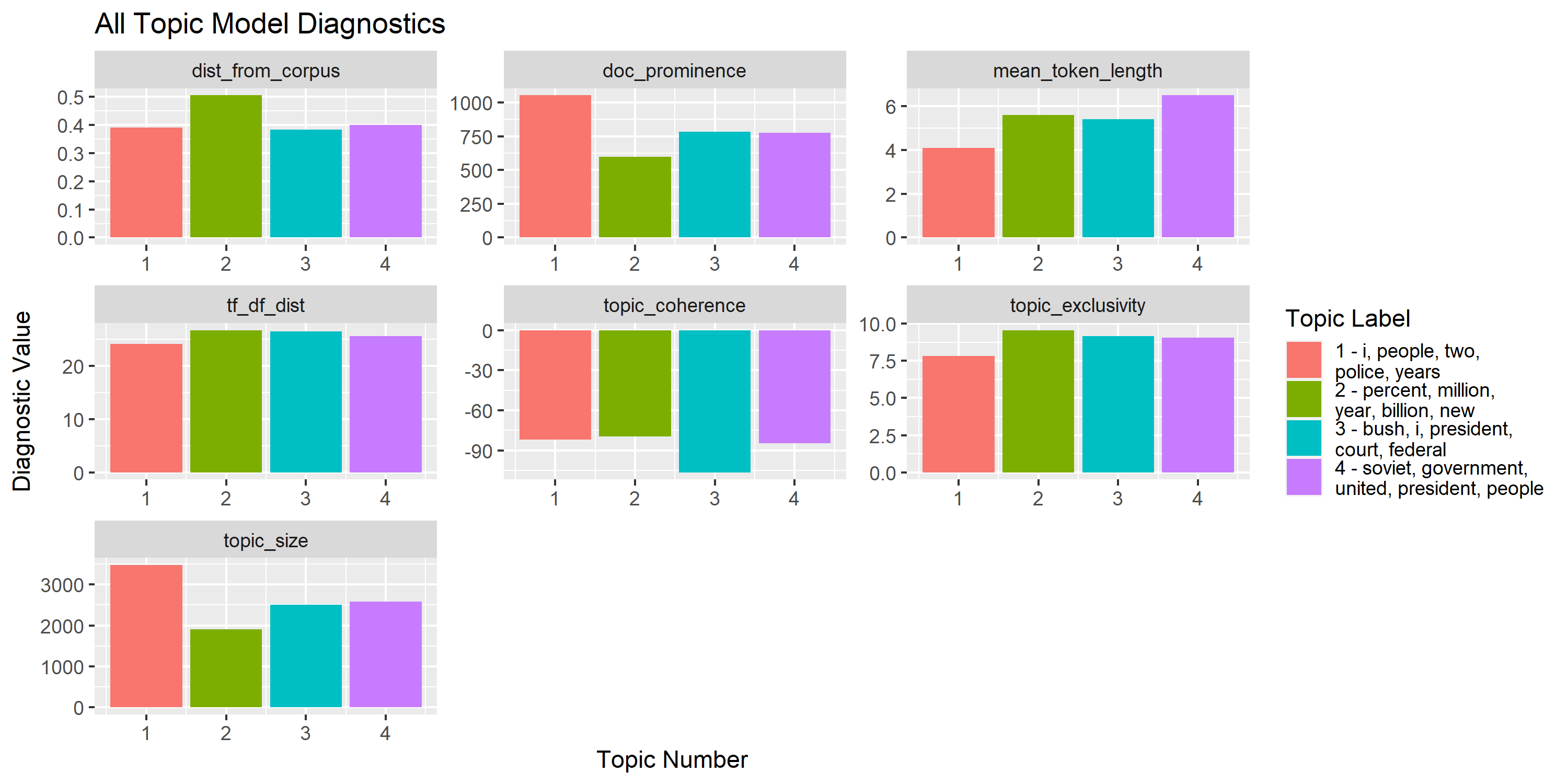 These diagnostics help provide a more rigorous confirmation of our intuition about identifying “good” versus “bad” topics in a topic model.