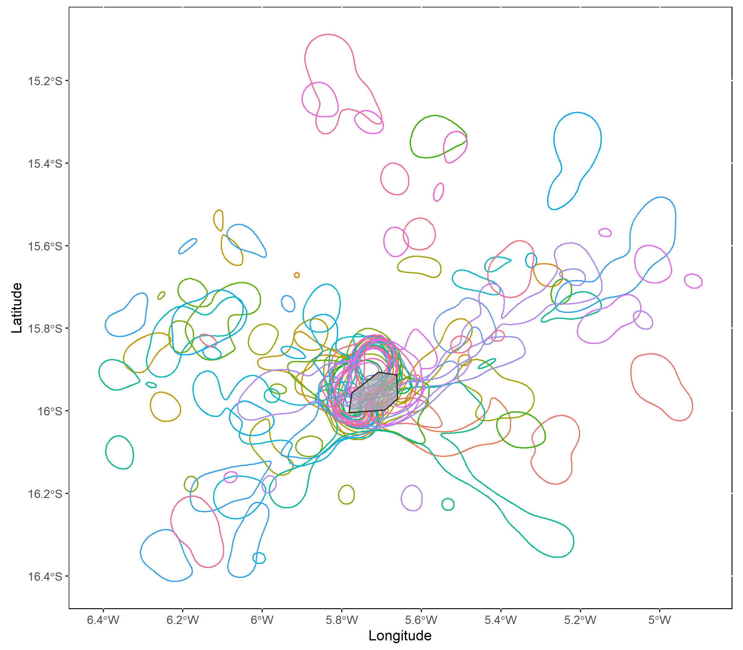 This package is comprised of functions that facilitate the identification of areas of importance for biodiversity, such as Key Biodiversity Areas (KBAs), based on individual tracking data. For further detail concerning the method itself, please refer to this paper by Beal et al. (2021).