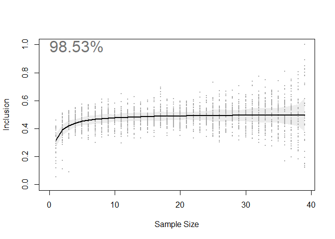 The relationship between sample size and the percent coverage of un-tested animals’ space use areas (i.e. Inclusion) is visualized in the output plot seen below.