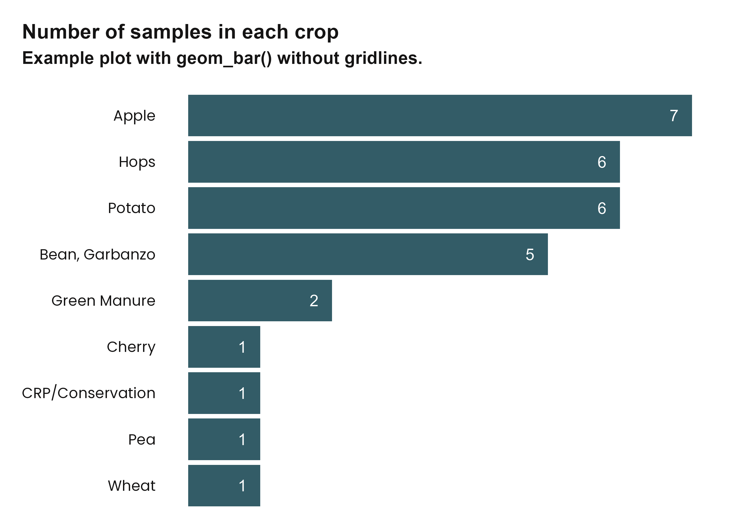 subtitle = "Example plot with geom_bar() without gridlines.",
