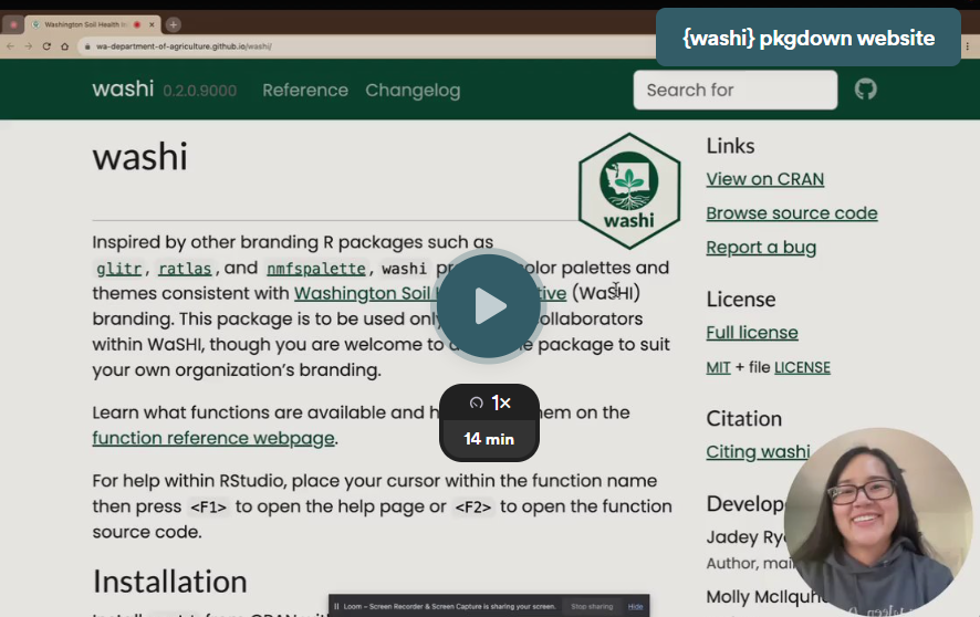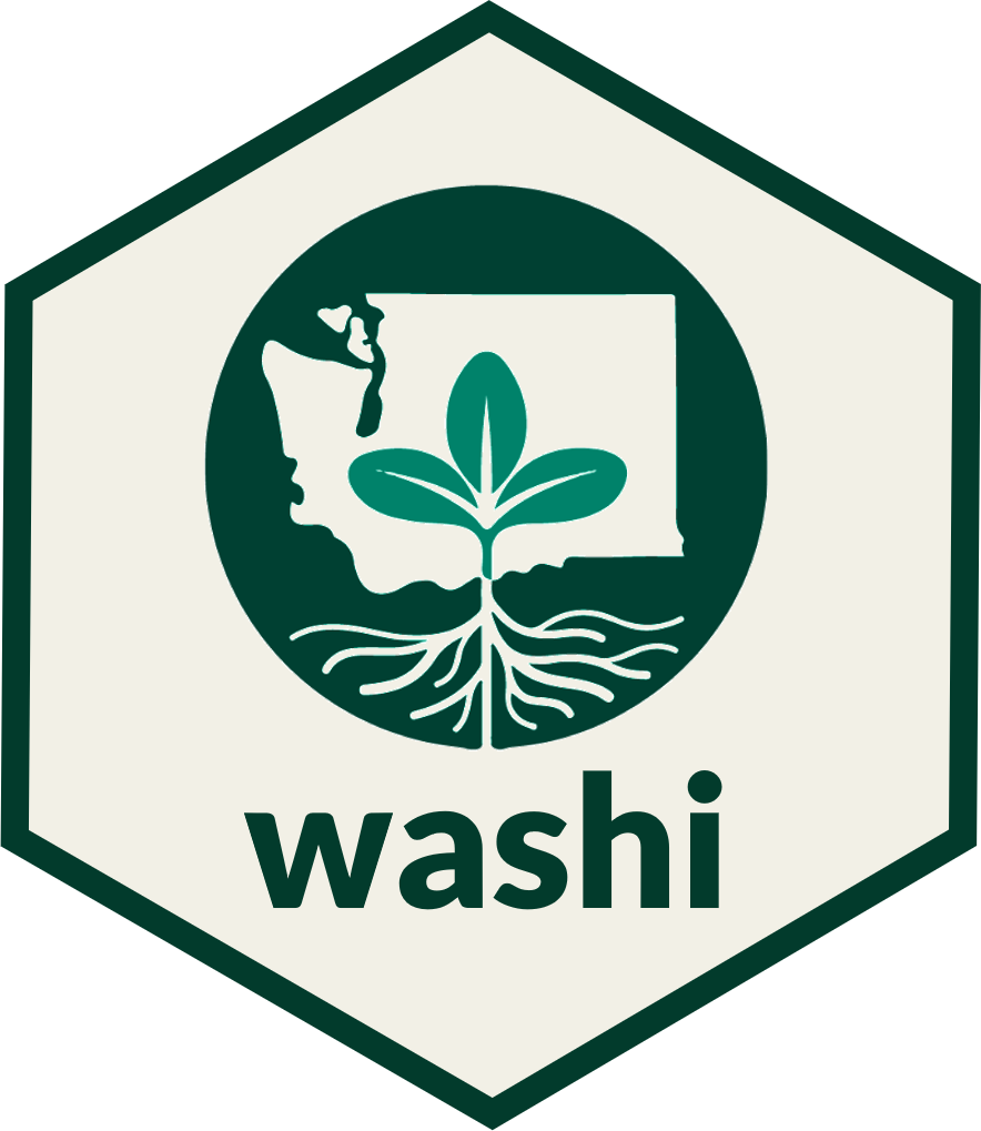 Inspired by other branding R packages such as glitr, ratlas, and nmfspalette, washi provides color palettes and themes consistent with Washington Soil Health Initiative (WaSHI) branding. This package is to be used only by direct collaborators within WaSHI, though you are welcome to adapt the package to suit your own organization’s branding.