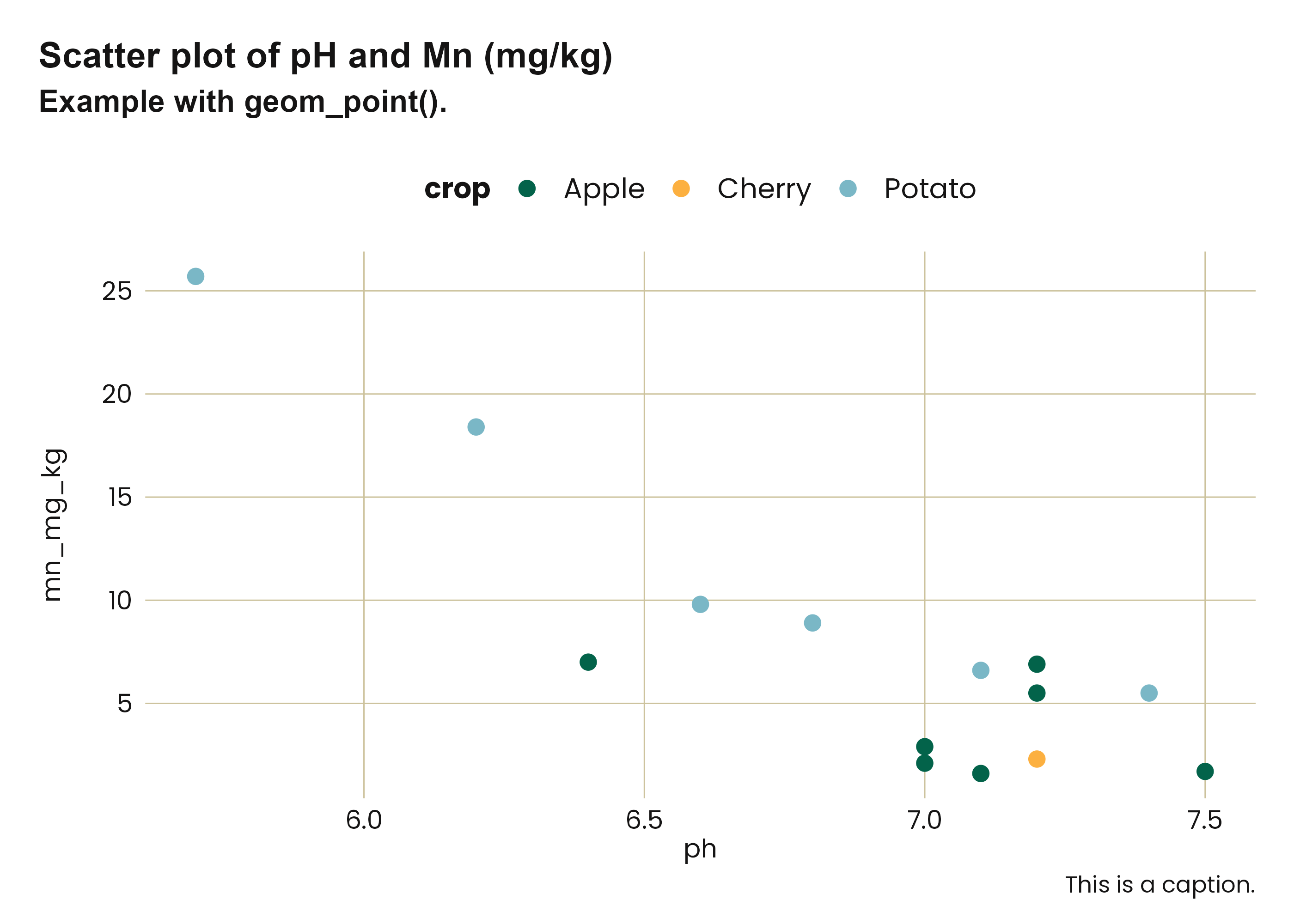title = "Scatter plot of pH and Mn (mg/kg)",